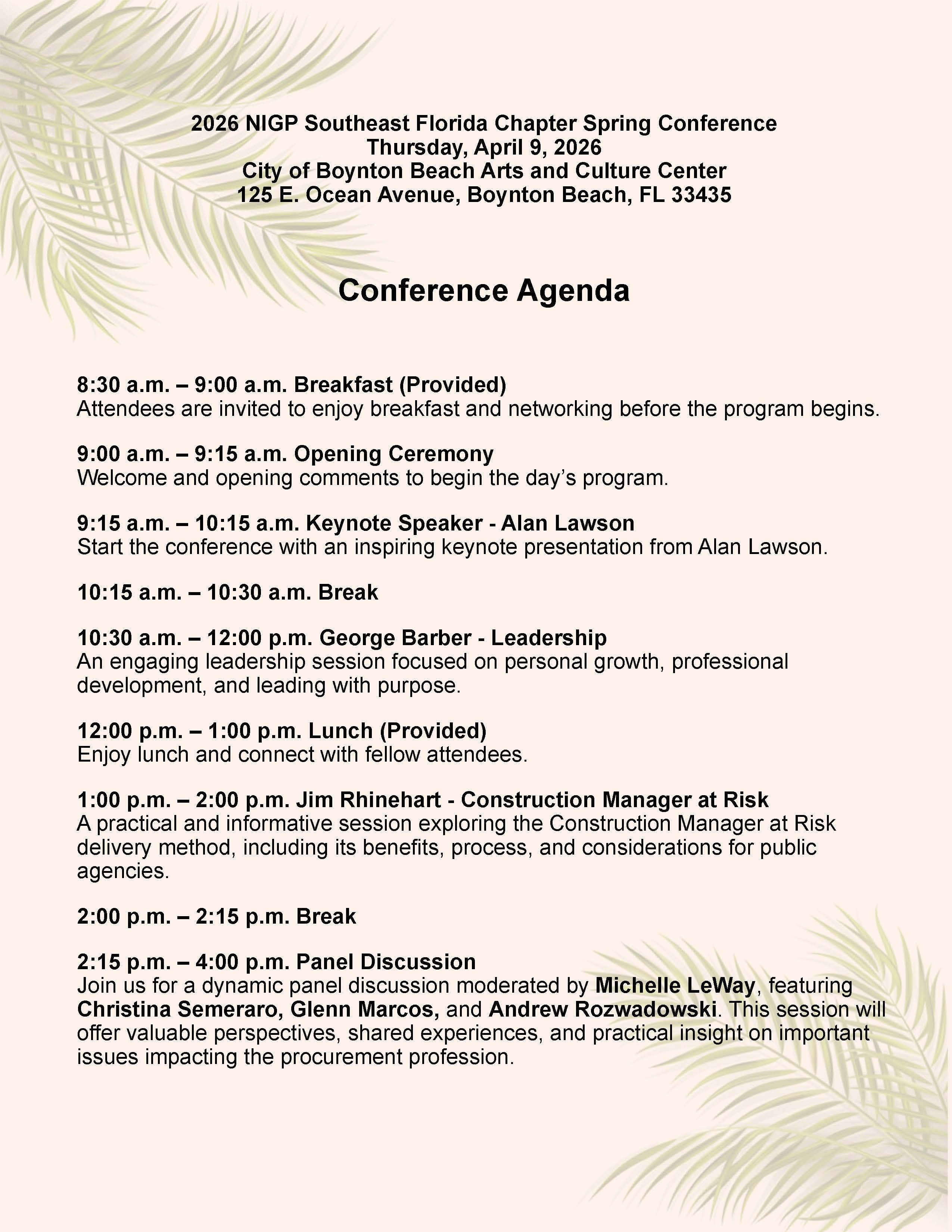 Join us for a day to learn and network with fellow procurement professionals while hearing from an outstanding lineup of speakers and panelists.